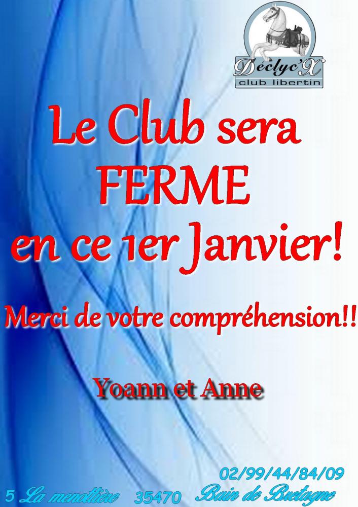 Le club sera fermé en ce 1er Janvier!!