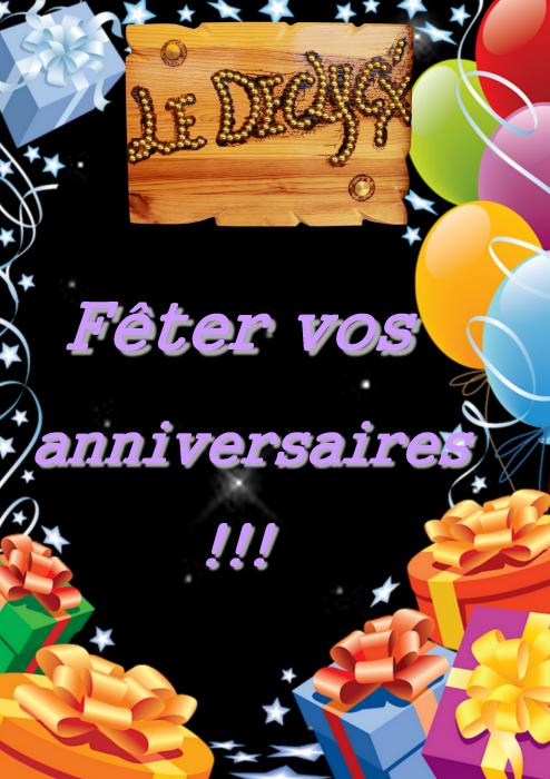L'équipe du Déclyc'X sera heureuse de vous offrir un gâteau ainsi qu'une bouteillle de Crémant de Loire pour fêter votre anniversaire!!! Merci de le faire savoir une semaine à l'avance et de vous présenter à votre arrvivée pour organiser votre soirée...
